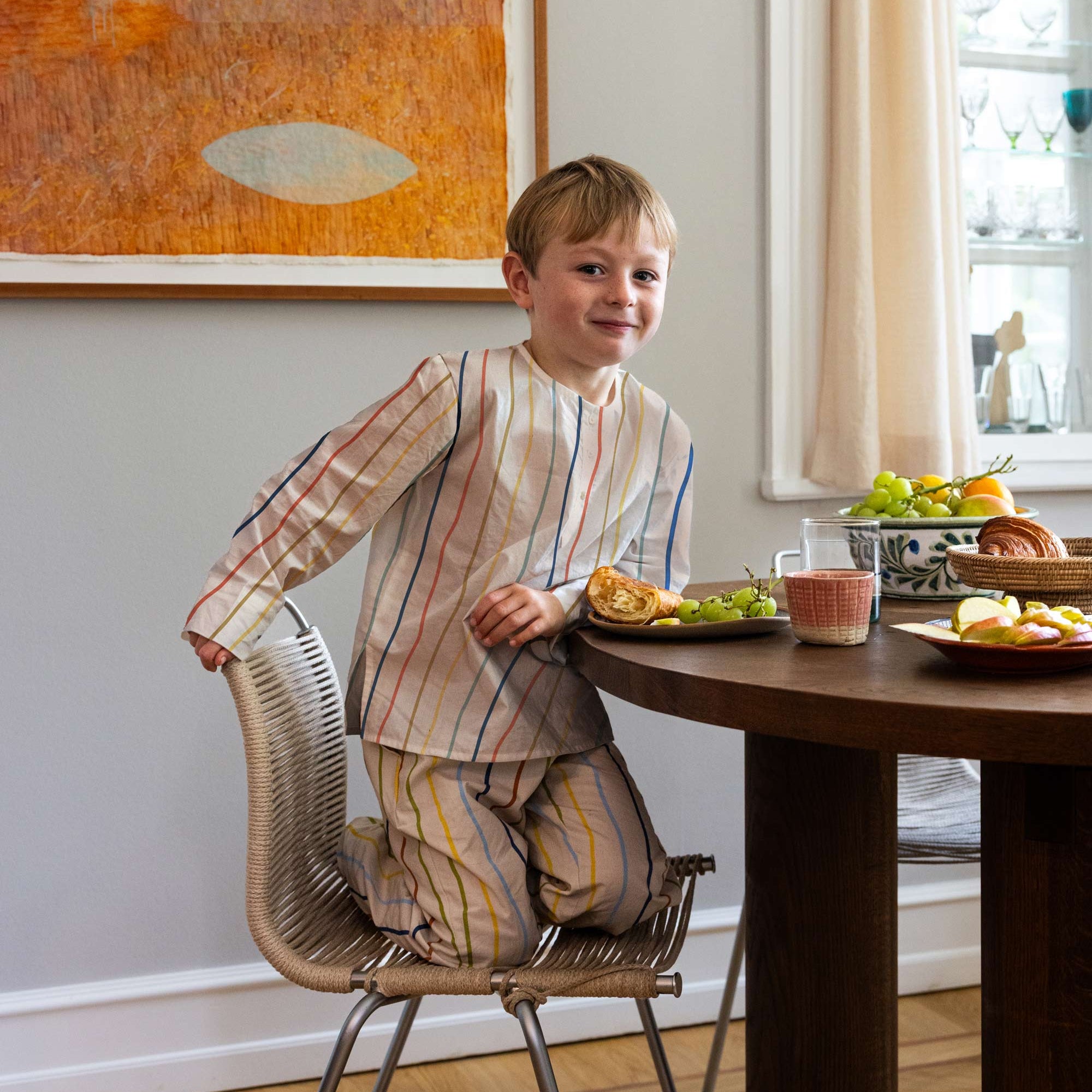 Vores Deep Sleep-børnepyjamas er designet med ét formål: at give små kroppe ro til at falde i søvn og vågne godt igen. Pyjamassen er syet i blødt, behageligt ren økologisk bomuld og skabt i et snit, der gør den let at bevæge sig i – perfekt til både stille stunder og puttetid.
