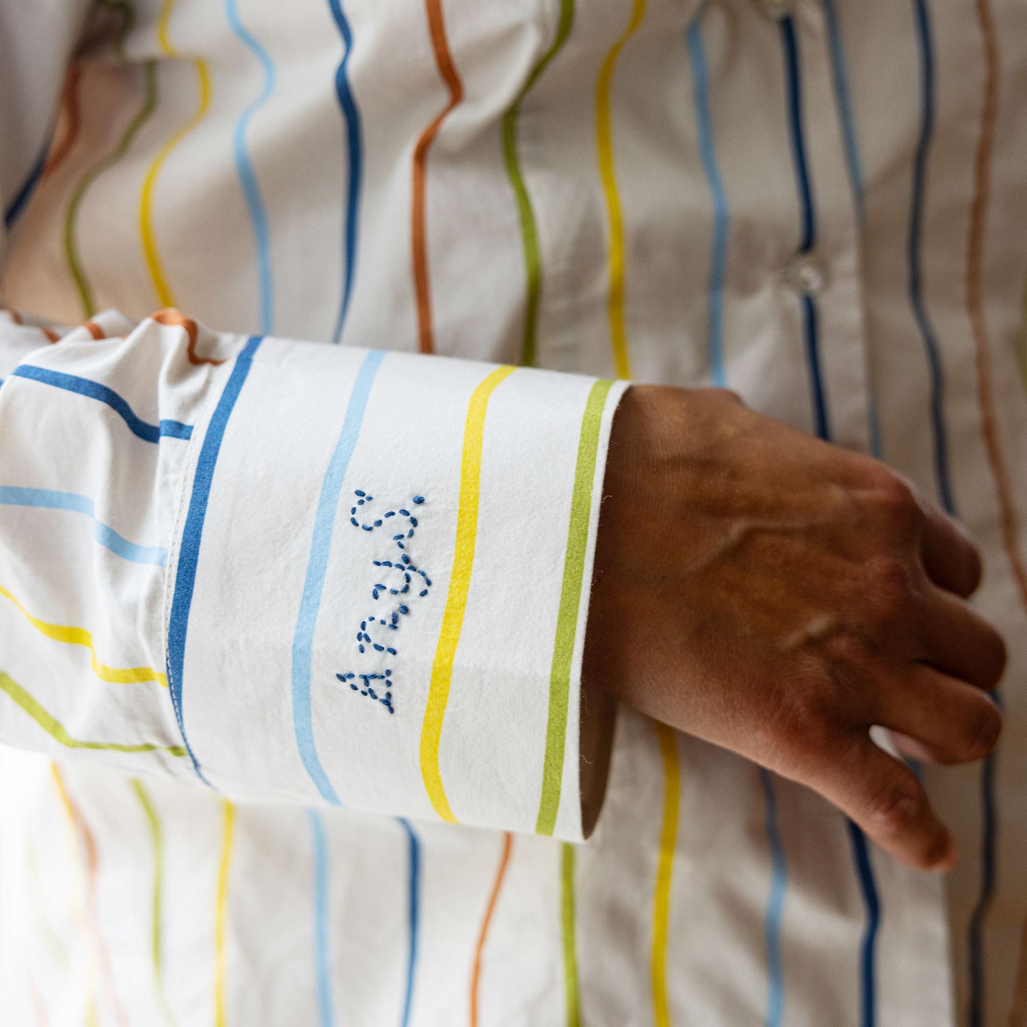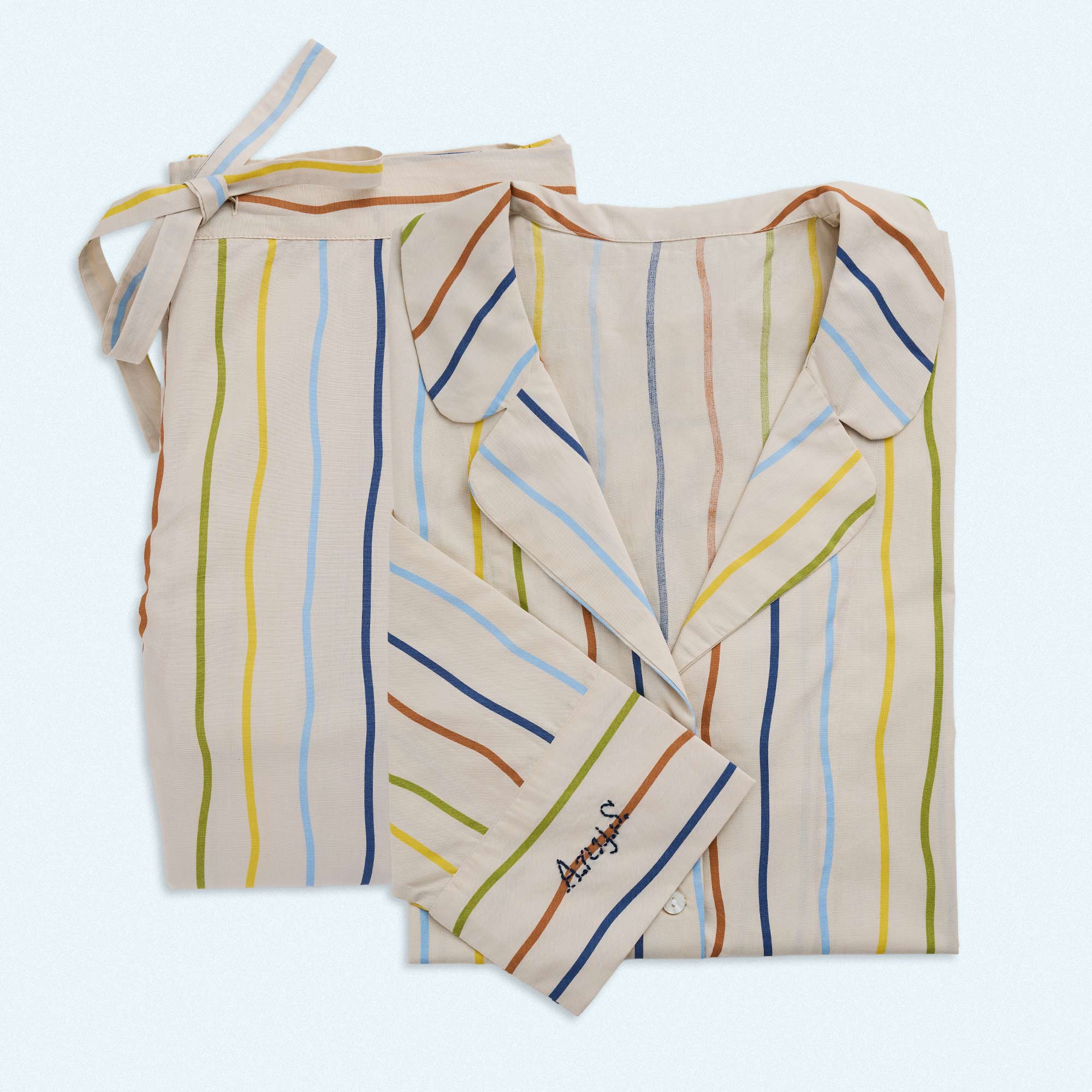 Vores Deep Sleep-pyjamas er udviklet med samme omhu og bevidsthed, som du kender fra resten af And Now You Sleeps univers. Hver detalje er gennemtænkt: fra det fine broderi på skjorteærmet til den let markerede talje og de lange, bløde bukseben, der falder smukt langs kroppen.