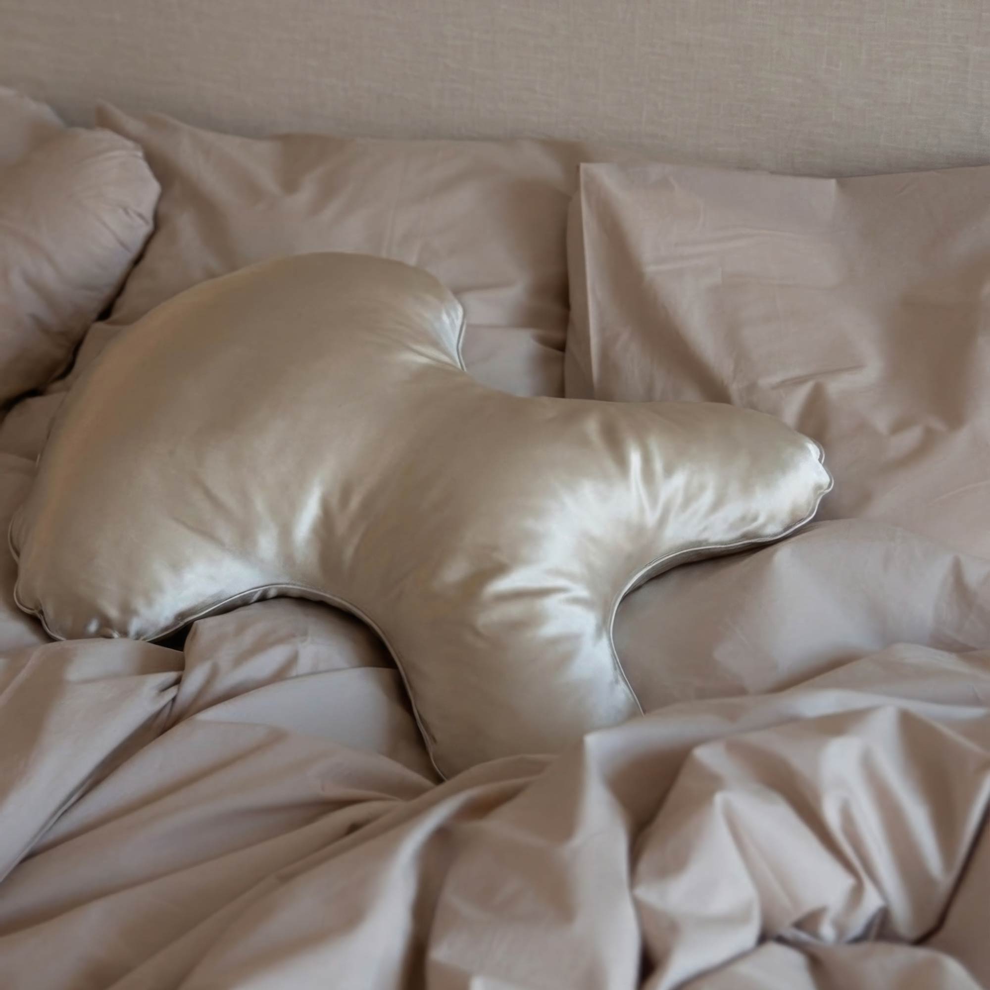Silkebetrækket er udviklet til at passe præcist til formen på Deep Sleep-hovedpuden, så du bevarer den støtte, du kender, men får en anden fornemmelse mod huden.